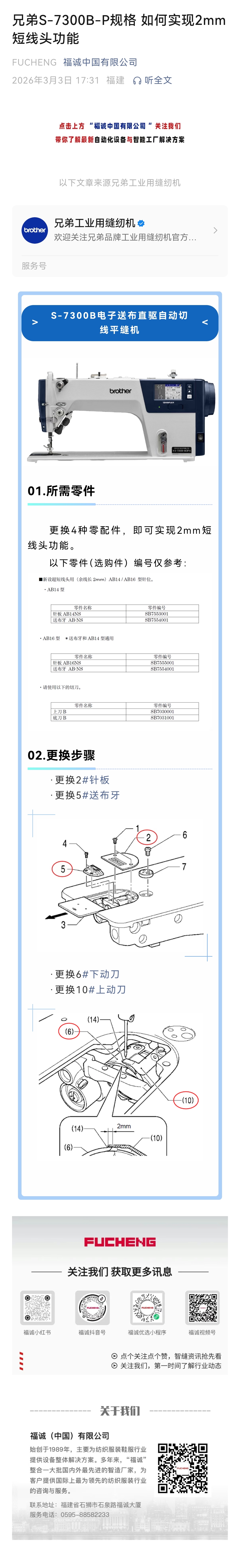 兄弟S-7300B-P规格 如何实现2mm短线头功能