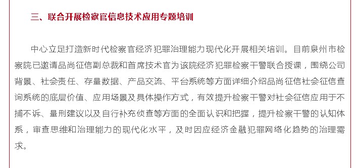 泉州市人民检察院经济犯罪大数据研究中心落户品尚征信