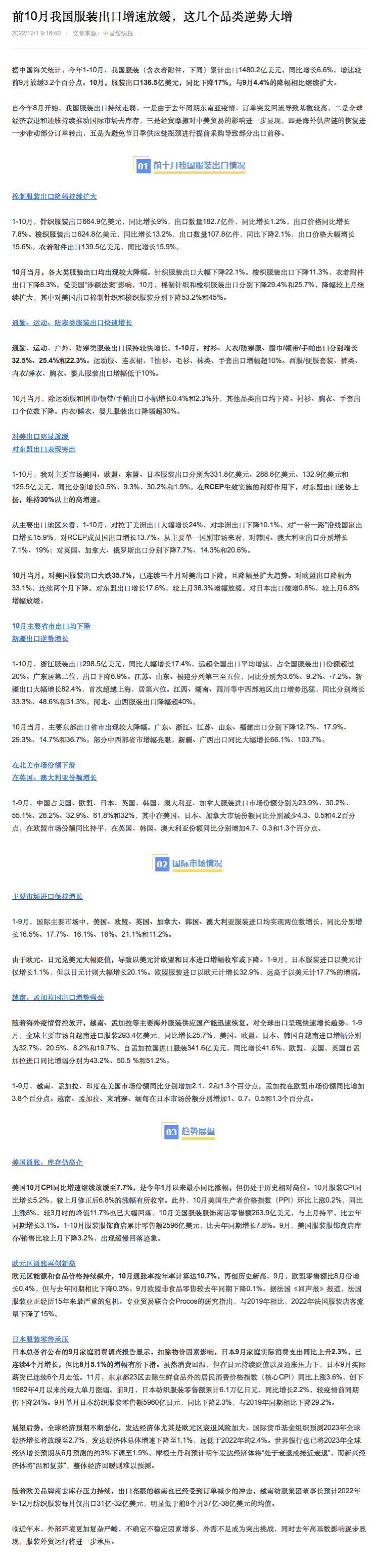 前10月我国服装出口增速放缓,这几个品类逆势大增