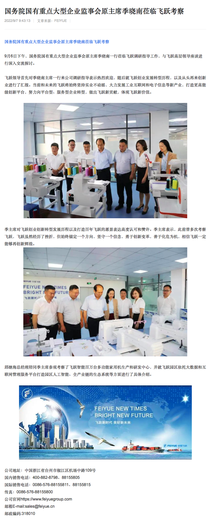 国务院国有重点大型企业监事会原主席季晓南莅临飞跃考察
