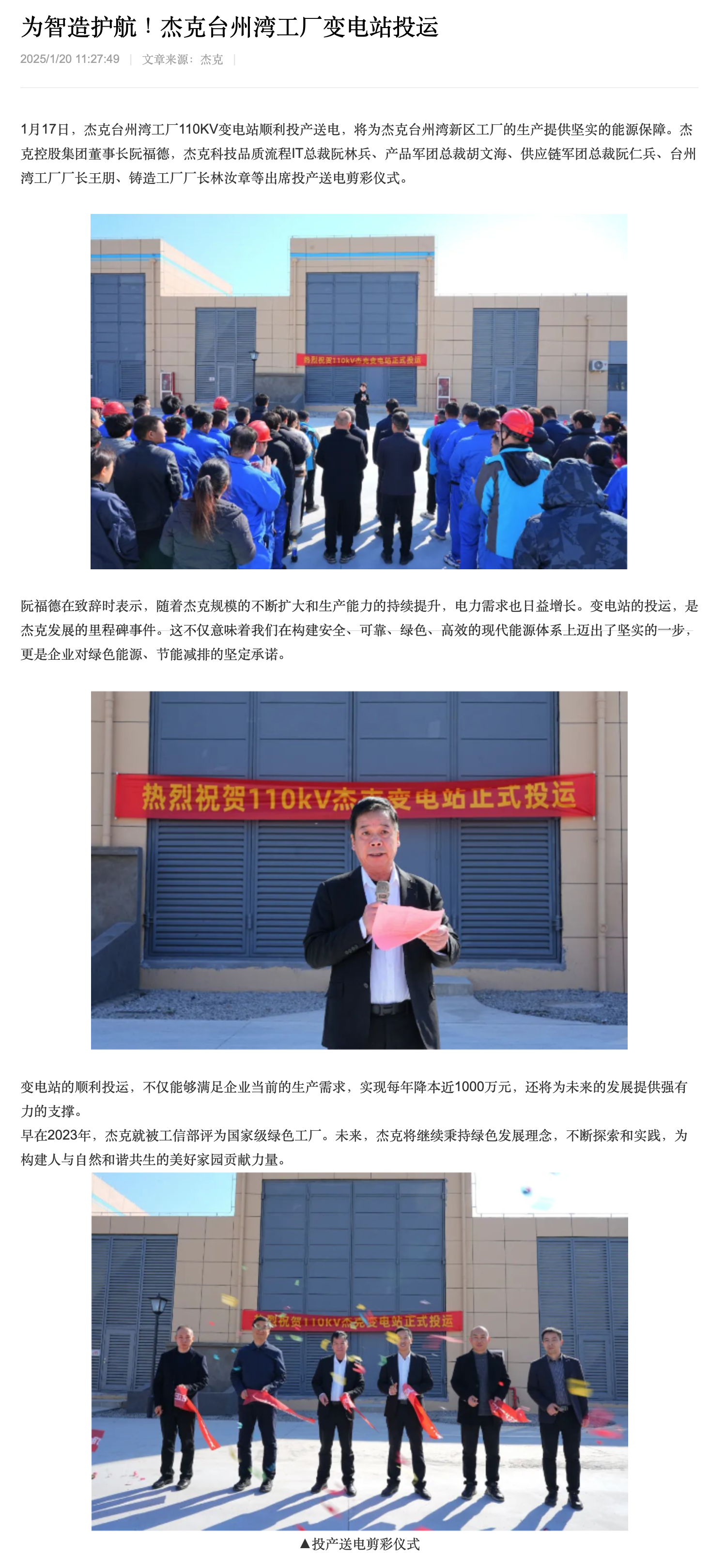 为智造护航!杰克台州湾工厂变电站投运